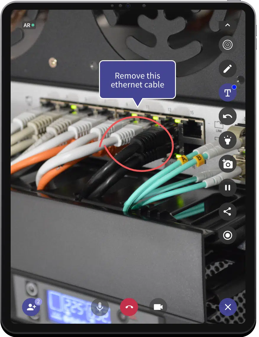 Through an interactive video interface, users can place anchored AR annotations and overlays to help guide customers through a remote collaboration call.
